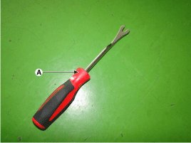 (1) To remove the front pillar trim, the below tool (A) must be used.