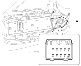 3. Disconnect the connector and remove the door mirror switch (A) after removing the screws.