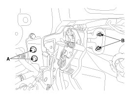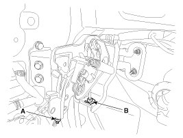 6. Remove the parking brake pedal mounting bolts (A) and nuts (B).
