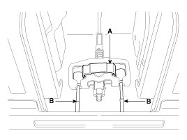 4. Install the holding clip (B) and the cable adjusting nut(A) after fixing the parking brake cable.