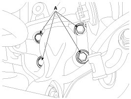 5. Loosen the hub assembly mounting bolts (A), and then remove the hub assembly and parking brake assembly.