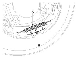 3. Install the adjuster assembly (B) and the lower return spring (A).