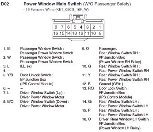D02 Power Window Main Switch (W/O Passenger Safety):