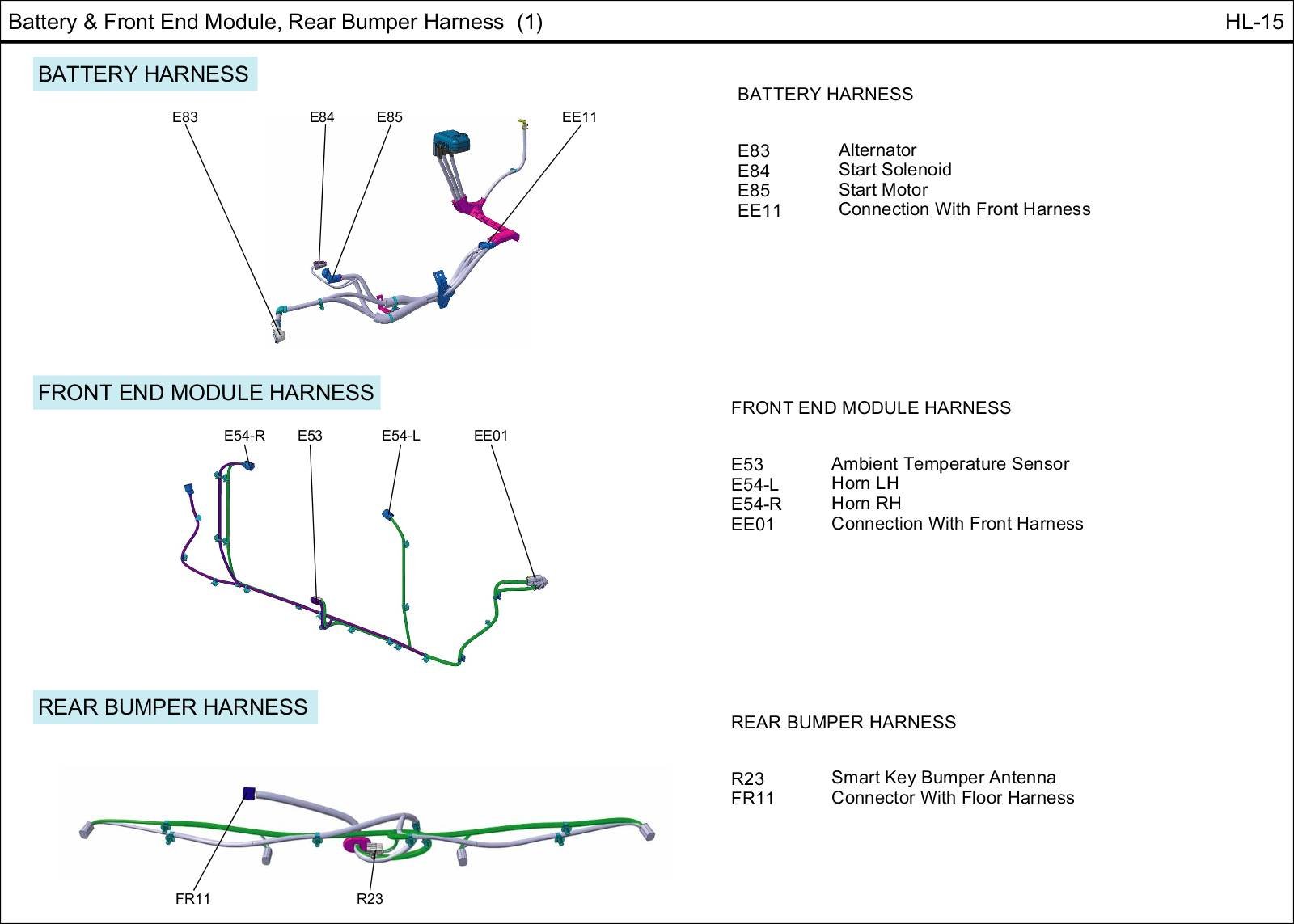Battery & Front End Module, Rear Bumper Harness: