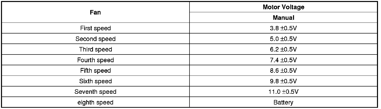 2. Manually operate the control switch and measure the voltage of blower motor.