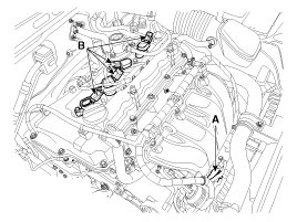 2. Disconnect the injector extension connector (A) and ignition coil connectors (B).