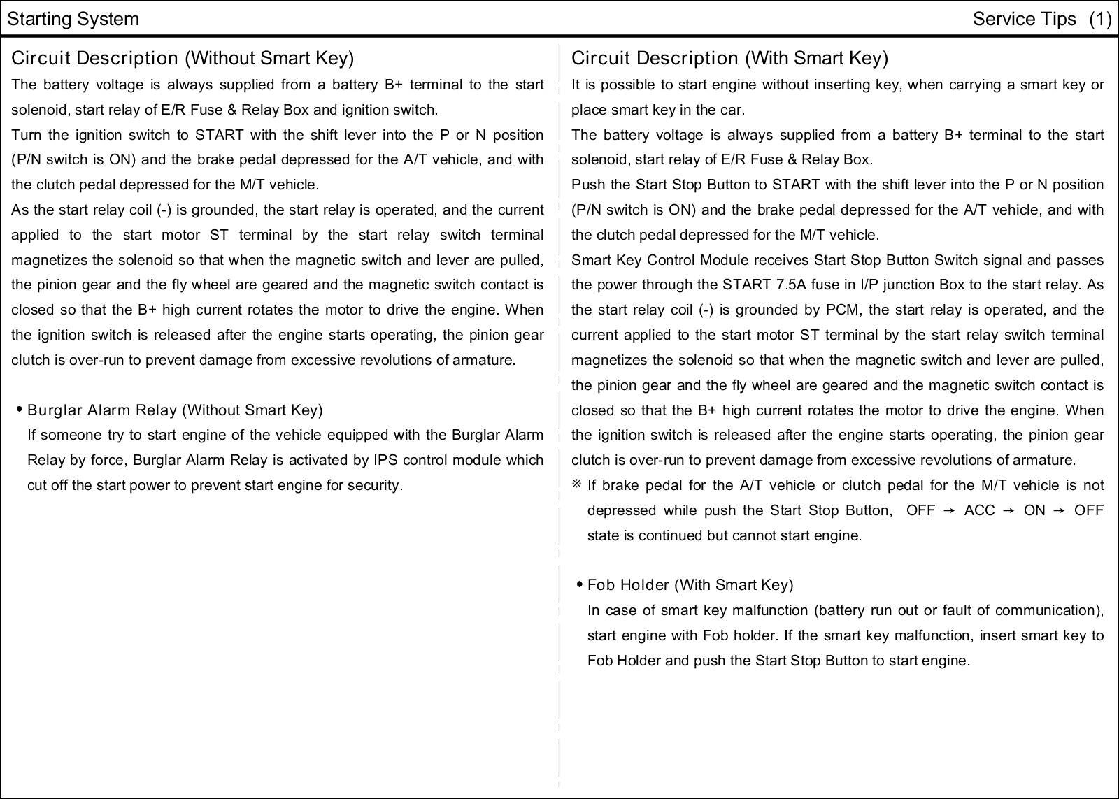 Starting System: Description and Operation