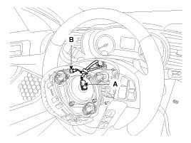4. Disconnect the airbag module connector (A) & horn connector (B) and then remove the airbag module from the steering wheel.
