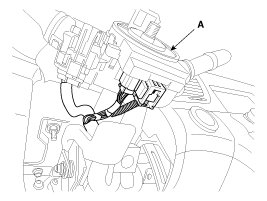7. Disconnect the connector and then remove the clock spring (A).