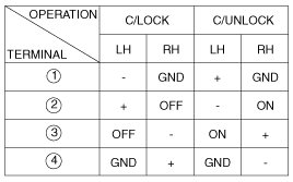 Check for continuity between the terminals in each switch position when inserting the key into the door according to the table