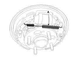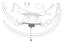 8. Install the adjuster assembly (B) and upper return spring (A) as right direction. Be careful not to damage the wheel cylinder dust covers.