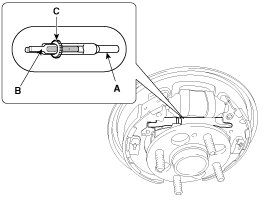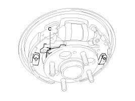 5. Measure the brake lining thickness (C).Measurement does not include brake shoe thickness.