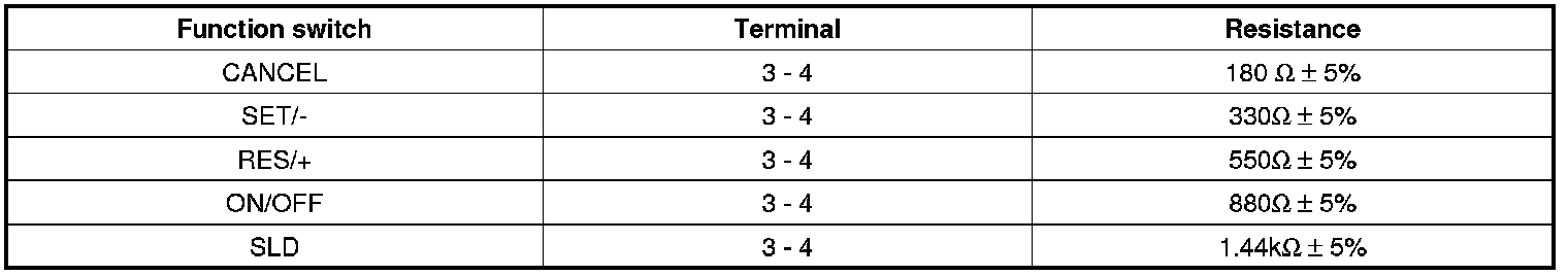 2. Measure resistance between terminals on the control switch when each function switch is ON (switch is depressed).