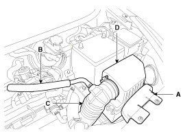 (3) Disconnect the air intake hose (C) and then remove the air cleaner assembly (D).