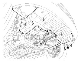 23. Disconnect the ground line (A) and then remove the engine mounting support bracket (A).