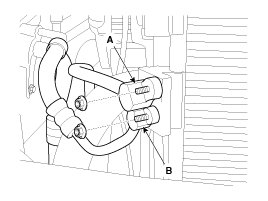 5. Disconnect the discharge line (A) and liquid line (B) from the condenser.