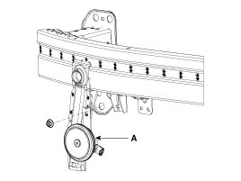 2. Remove the mounting nut and disconnect the horn connector, then remove the horn (A).