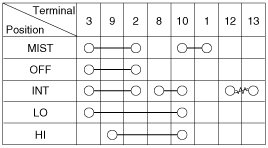 With the multifunction switch in each position, make sure that continuity exists between the terminals below. If continuity is not as specified, replace the multifunction switch.