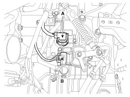 5. Disconnect the hose (B) after removing the automatic transaxle fluid cooler hose clamp (A).