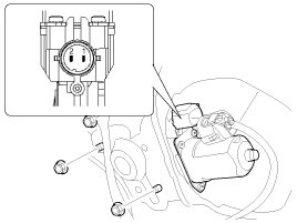 4. Connect the motor terminals directly to battery voltage (12V) and check that the motor operates smoothly. Next, reverse the polarity and check that the motor operates smoothly in the reverse direction. If the operation is abnormal, replace the motor.