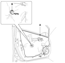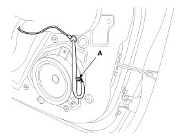 4. Disconnect the front door speaker connector (A).