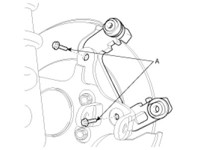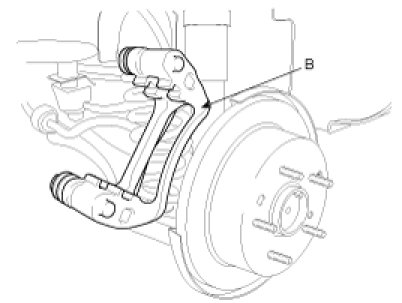 2. Install the caliper bracket (B) and tighten the caliper mounting bolts (A).