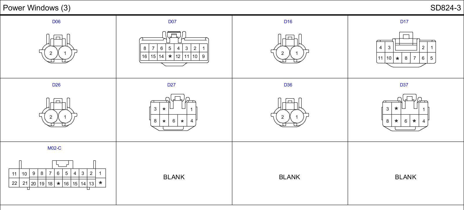 Power Windows (3) Connector Pin Outs: