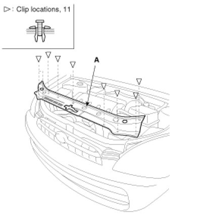 4. Remove the front bumper radiator grill cover (A).