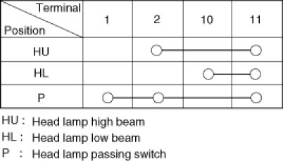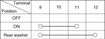 1. With the multi function switch in each position, make sure that continuity exists between the terminals below.