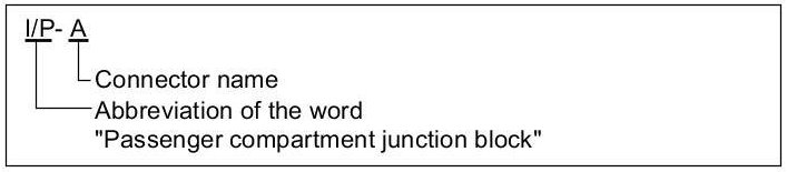 A junction block identification symbol consists of a wiring harness location classification symbol corresponding to a wiring harness location and number corresponding to the connector in the junction block.