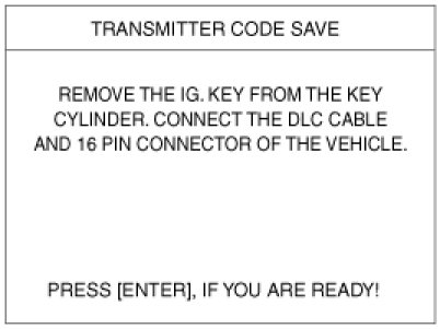 4. After removing the ignition key from key cylinder, push "ENTER" key to proceed to the next mode for code saving. Follow steps 1 to 4 and then code saving is completed.