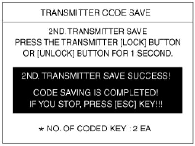 4. If the doors lock and unlock, the transmitter is O.K, but if the doors don't lock and unlock, register the transmitter code, then try to lock and unlock the doors.