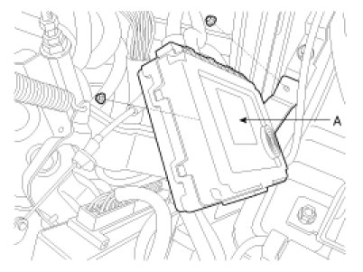 3. Remove the body control module (A) after loosening 2 nuts and disconnecting connector.