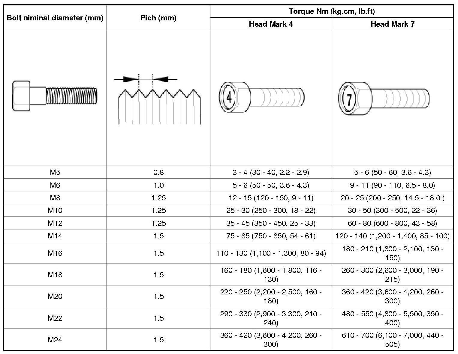 TIGHTENING TORQUE TABLE OF STANDARD PARTS