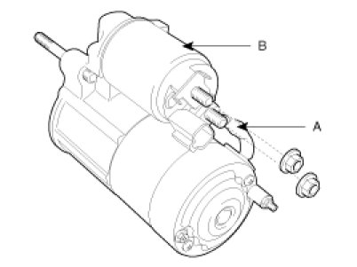 1. Disconnect the M-terminal (A) on the magnet switch assembly (B).