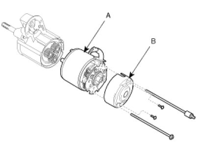 1. Make sure there is no continuity between the (+) brush holder (A) and (-) plate (B). If there is continuity, replace the brush holder assembly.