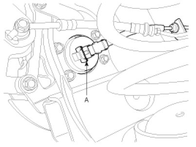 1. Remove the connector after(A) removing the rear wheel speed sensor clip.