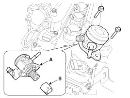 16. Remove the exhaust OCV (Oil control valve) (B).