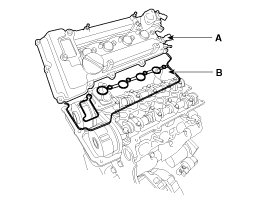 17. Remove the cylinder head cover (A) with gaskets (B).
