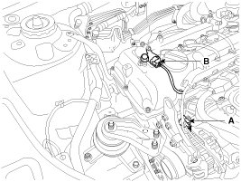 10. Disconnect the oxygen sensor connectors (A) and the condenser connector (B).
