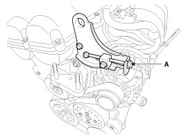 20. Loosen the alternator tension adjusting bolt (A) to loosen tension.