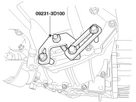- Install the SST (09231-2B100) to hold the ring gear after removing the starter.