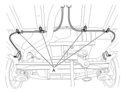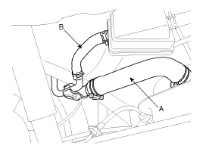 6. Disconnect the fuel filler hose (A) and the ventilation hose (B).