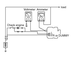 3. Run the engine at a speed of about 2,500 rpm and read the voltmeter when the alternator output current drops to 10A or less