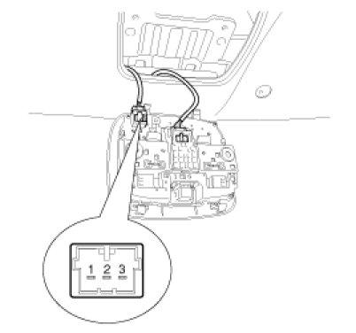 1. Install the overhead console lamp after connecting the sunroof switch and lamp connector.