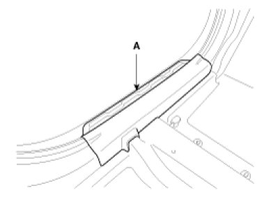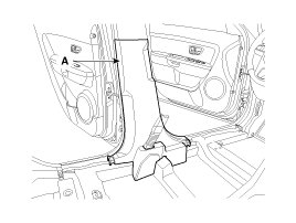 1. Using a screw driver or remover, remove the front door scuff trim (A).
