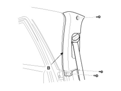 5. After loosening the mounting bolts, then remove the center pillar upper trim (B).