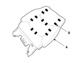 10. After removing the hog-ring clips (B) on the front of seat back and remove the seat back cover (A).
