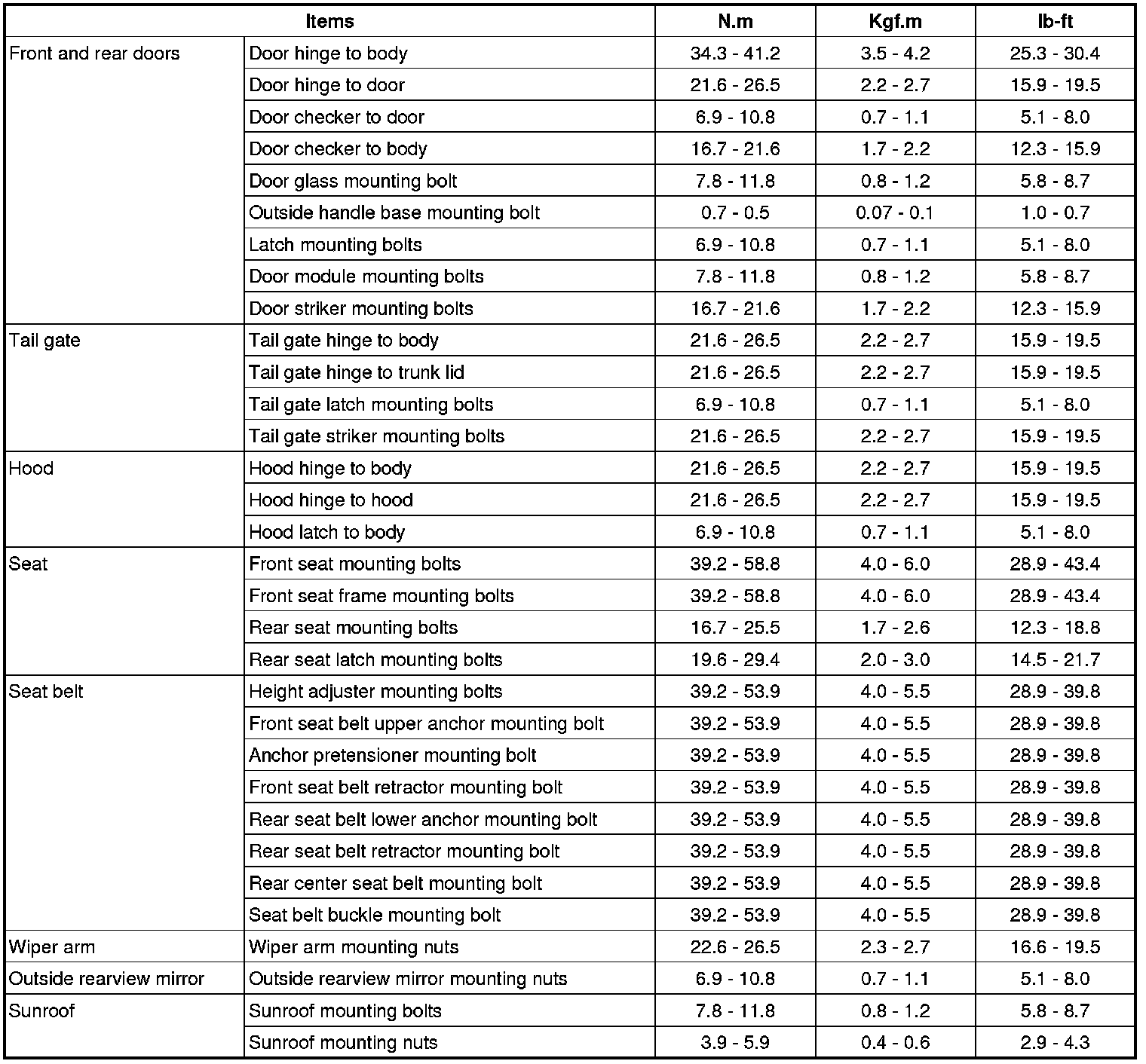 Tightening Torques