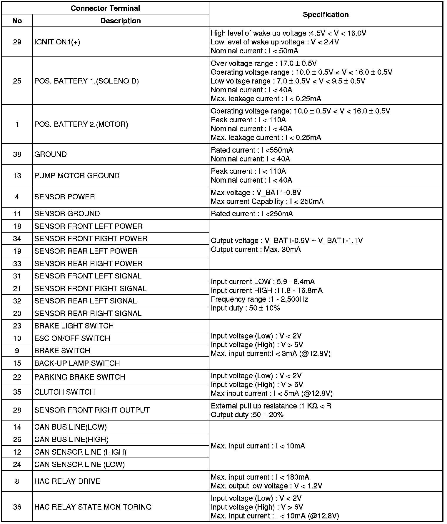 ESC Connector Input/Output